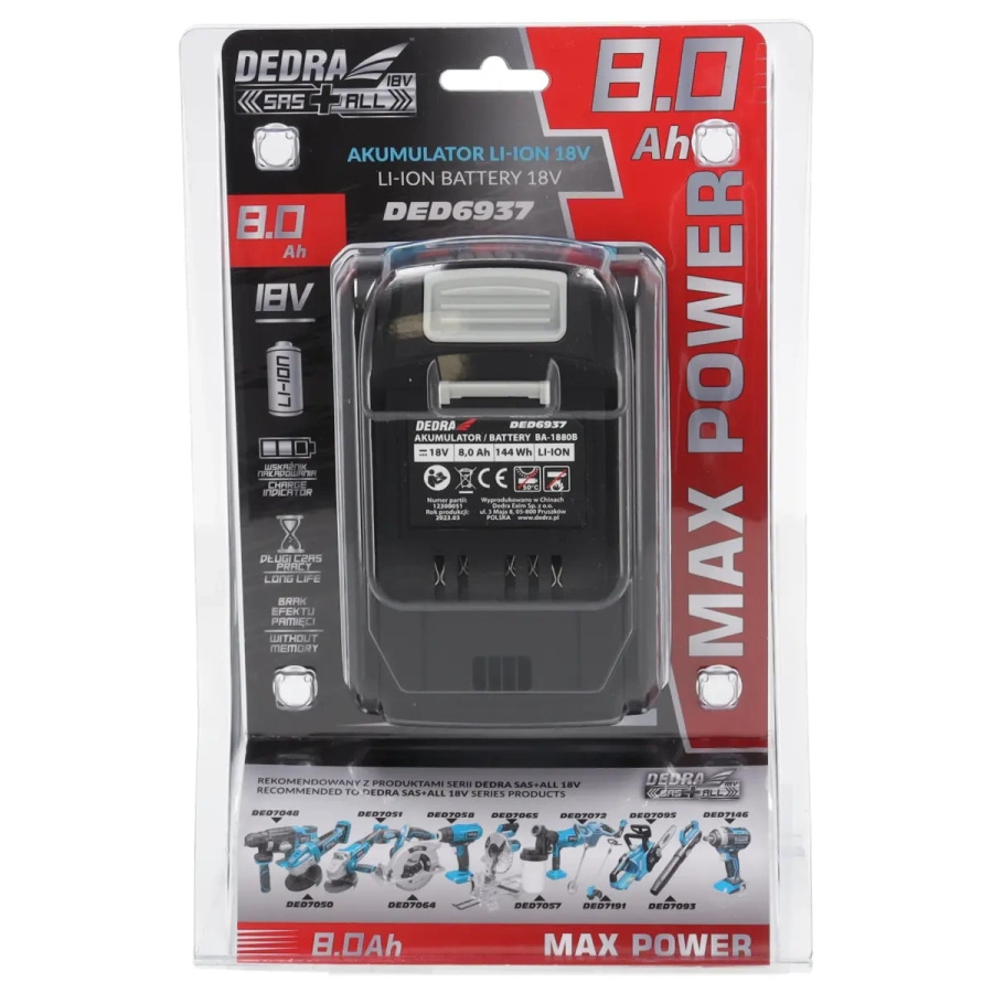 Akumulátor 8,0 Ah 18V, lítium-iónový Li-Ion, séria SAS ALL, indikátor stavu nabitia akumulátora