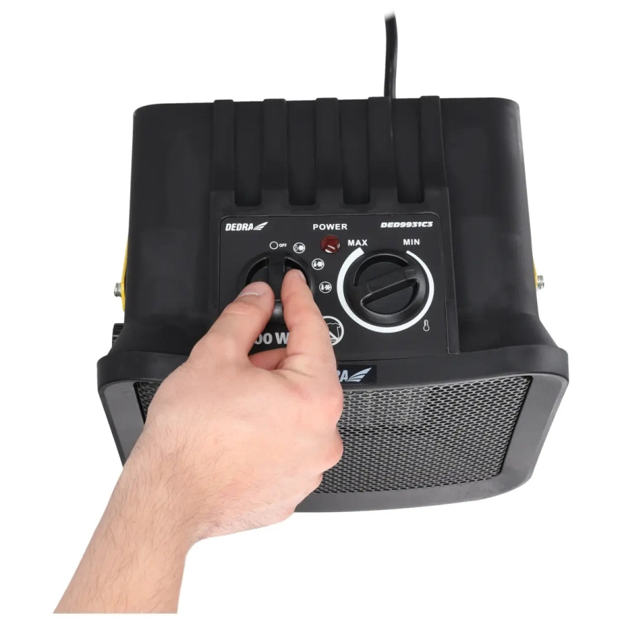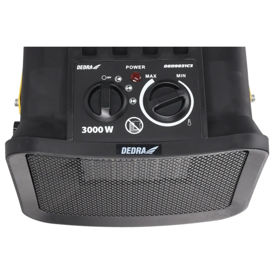 Príkon: 1500/3000 W; prietok vzduchu 187 m3/h; výstup 230 V; keramické vykurovacie teleso; ochrana proti prehriatiu; termostat; 3 prevádzkové režimy: chladný/teplý/horúci