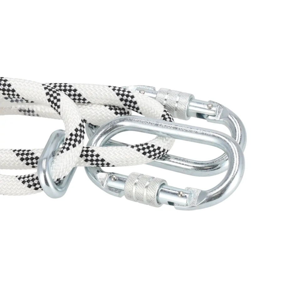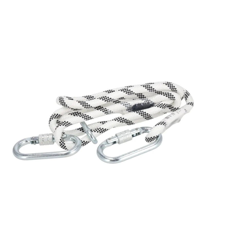 Nastaviteľná dĺžka pridržiavacieho lana; 2 karabíny - pozinkovaná oceľ; spĺňa požiadavky: PE-EN 354,PE-EN 355 a PE-EN 362
