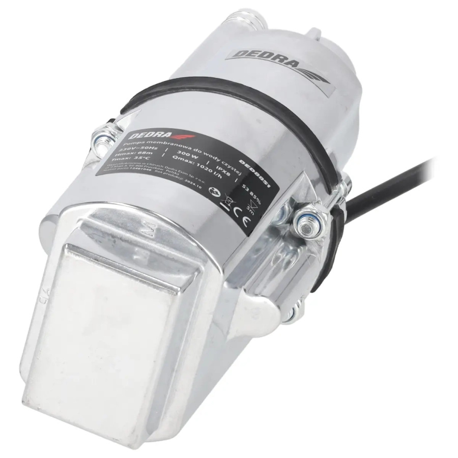 Max. prietok 1020 l/h, hliníkový kryt, max. hĺbka ponoru 5 m, max. výtlak 68 m, dlhý napájací kábel (10 m)