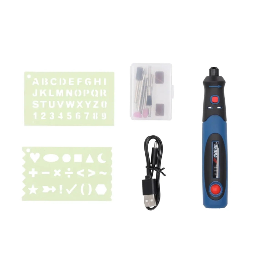 Napájanie: 3,6 V; 3 rýchlosti: 5000/10000/15000 ot/min; priemer skľučovadla: 3,2 mm; LED indikátor otáčok; bezpečnostná funkcia; súčasťou dodávky: 12 príslušenstva