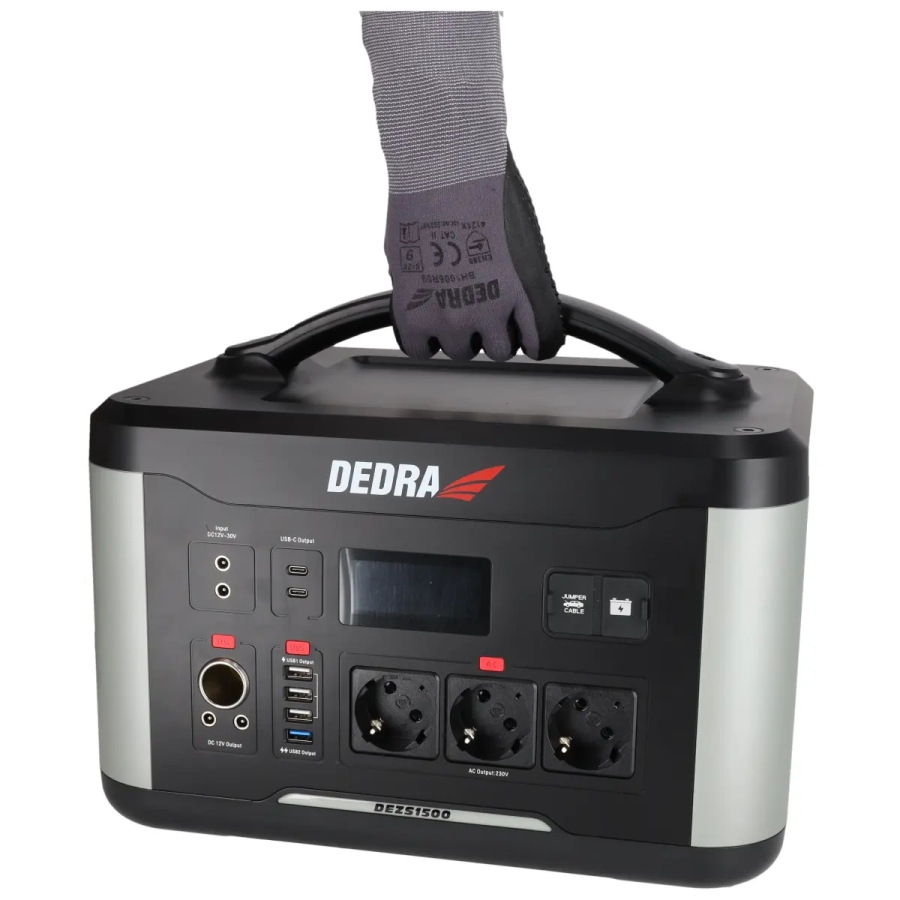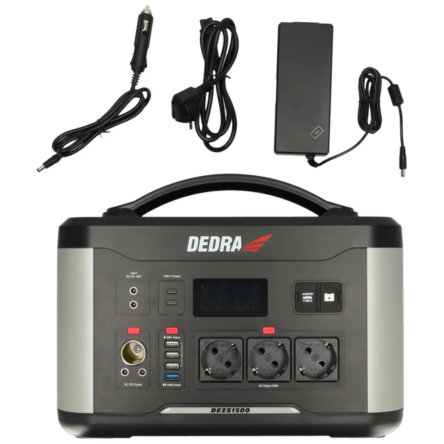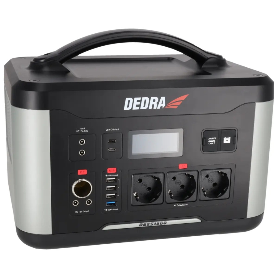 Kapacita 55Ah, 1408Wh, LiFePO4, výstupný výkon AC 1500W/3000W, vstavané zásuvky AC 3x230V/50Hz, DC 12V/10A, port USB 2.0x3, USB 3.0x1, USB Cx1, 12Vx2, zásuvka do auta, LED, LCD, funkcia štartovania motora 12V, sieťová nabíjačka, možnosť nabíjania solárneho panelu