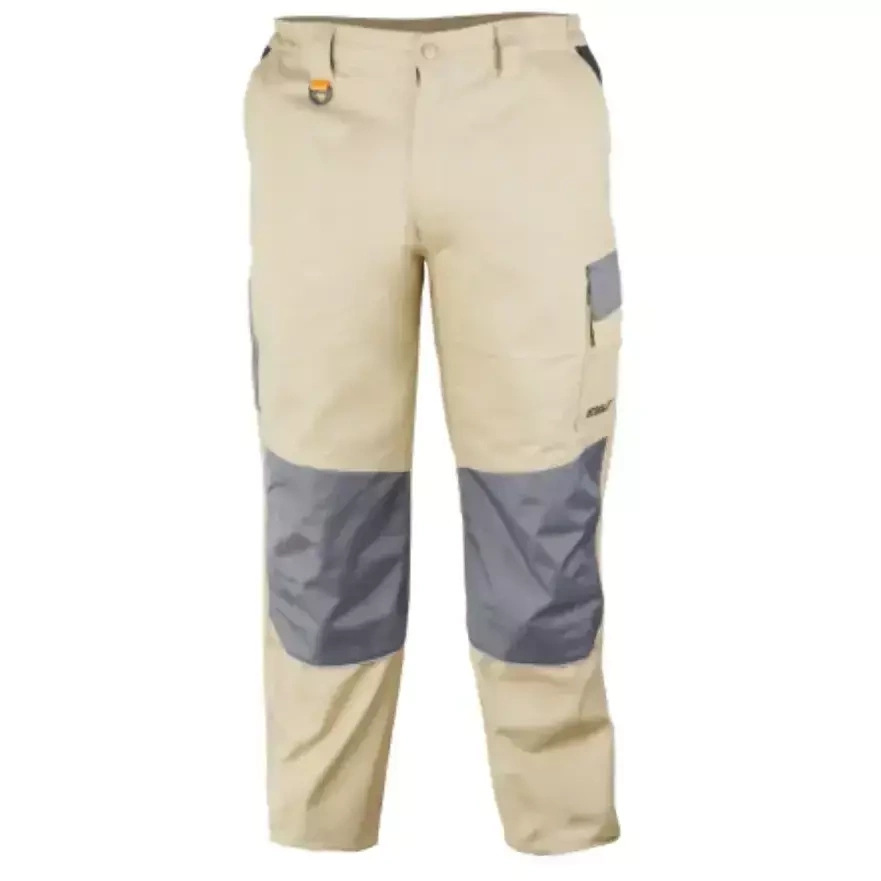 Ochranné nohavice, 100 % bavlna, gramáž 270 g/m², 9 vreciek, z toho 4 zapínané suchým zipsom, vrecko na mobil, nastaviteľná šírka pása sťahovačom, spevnené kolená, miesto na chrániče kolien zapínané suchým zipsom, trojité stehy na nohaviciach, reflexné prvky