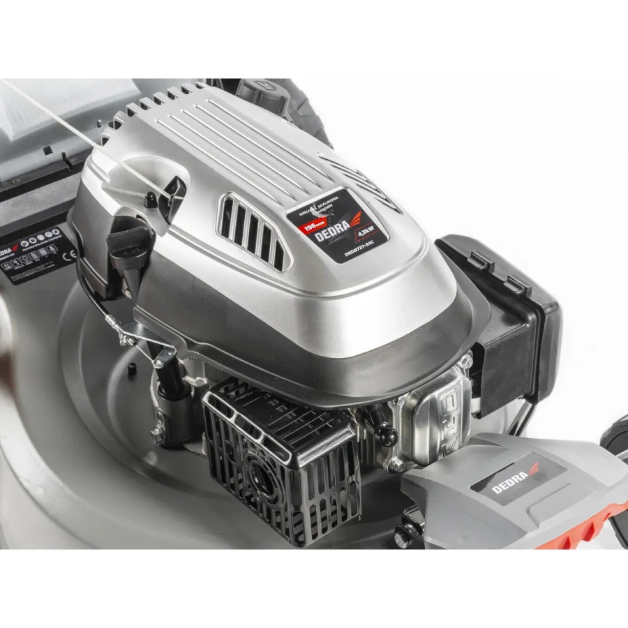 Objem: 196 cc, otáčky: 2800 ot/min, objem olejovej nádrže: 0,6 l, objem palivovej nádrže palivová nádrž: 1 l, objem koša: 65 l - polovičný plastový/polovičný textilný kôš, oceľový kryt, funkcie: zadný výsyp, mulčovanie, 6 výšok rezu (25-75 mm), šírka rezu: 51 cm, pohon, plastový panel s držiakom na nápoje, funkcia nastavenie rýchlosti kosenia, priemer kolies: 20 cm, 25 cm, otočné kolieska