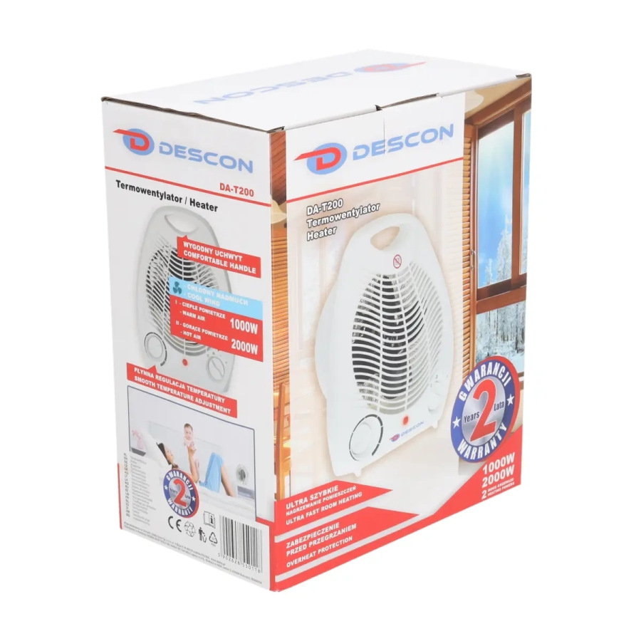 Príkon: 1000 W/2000 W; zásuvka 230 V; kompaktné rozmery; ochrana proti prehriatiu; plynulá regulácia teploty; ventilátor: chladný/teplý/horúci