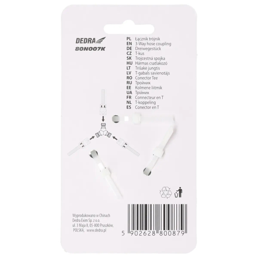 Umožňuje rýchlo spojiť tri hadice zakončené rýchlospojkami Vyrobené z pevného plastu ABS